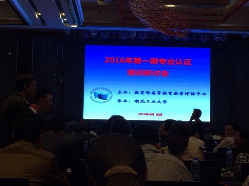 2016年4月18日,我院李恒杰、国玉红、苏敏、张宁四位老师,参加了武汉欧亚会展中心召开的“2016全国第一期专业认证研讨会”。该会议为教育部高等教育教学评估中心主办,湖北工业大学承办。
