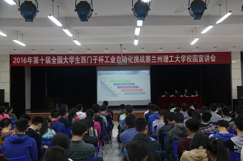 4月5日,电信学院在西校区大学生活动中心举办2016年第十届全国大学生西门子杯工业自动化挑战赛兰州理工大学校园宣讲会暨优秀校友报告会。报告会邀请学院2012届优秀校友、西门子兰州分公司技术工程师王建龙,为学院自动化、电气专业的本科学生做了专题报告。学院博士生导师赵小强教授、硕士生导师冯小林教授参加了本次会议,会议由学院党委杨雅琼副书记主持。