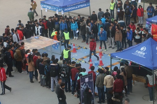 本次活动吸引了众多学子前来观看并参与到活动中来,活动现场人气火爆,争相参与,中午已经有大量围观学生试体验机器人,活动从下午15.00开始持续到晚上19.00,在寒冷的冬天带来了别样的速度与激情。同时,也为我校即将参加的2016年全国大学生机器人大赛拉开了选新的序幕,为我校学子积极参与科创活动提供了更加广阔的平台。