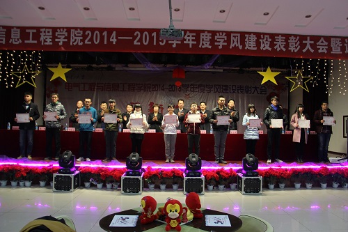 为深入学习贯彻党的十八届三中、四中、五中全会及学校第二次党代会精神,进一步树立先进典型,推动优良学风建设,营造良好的育人氛围,12月21日晚,电信学院在西校区大学生活动中心隆重召开2014-2015学年度学风建设表彰大会暨迎新晚会。学校党委李贵富书记,党委学工部部长、学生处张思成处长,学生就业指导服务中心李竹梅主任,校团委王正民书记,易班发展中心杨金明常务副主任及学院全体领导出席了大会,各年级班主任、辅导员、学生代表参加了会议。大会由电信学院党委杨雅琼副书记主持。