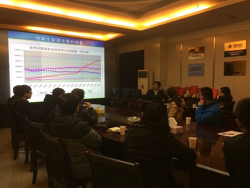 风电中心汪宁渤主任对863项目、风电与光伏等新能源的发展前景进行了介绍,从能源发展的背景、可再生能源发展情况、大规模可再生能源的优势与挑战、关键技术研究、风电技术中心科技成果简介以及发展与展望六个方面作了详细讲解,并就新型风电机组、分布式电源及微电网发展前景等问题与老师和同学们展开了讨论;随后,老师、同学们对风电中心的风电物理仿真平台实验室、系统机房以及风光联合预测实验室进行了参观,对平台建设情况、主要功能、以及风光联合预测等过程进行了深入了解。