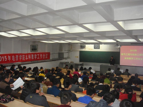11月17日下午,电信学院2015年本科教学工作会议在1号南楼302教室召开。学校芮执元副校长、教务处张清辉副处长,电信学院领导、全体教师及本科生代表120余人参加了会议。会议由张爱华院长主持。