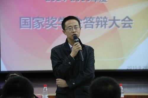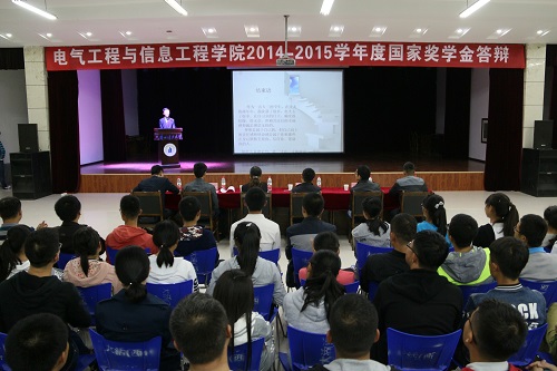 为了认真做好2014-2015学年度国家奖学金评审工作,电信学院自9月20日开始,成立了“电信学院2014-2015学年度国家奖学金评审领导小组”,本着“求真求是”的原则,创新工作模式,采取“个人申请—年级评选—学院答辩”的评审方式,于9月25日各年级分别举行年级评选答辩会,邀请班主任代表、学生代表担任年级答辩评委,从三个年级符合条件的四十多位申请人中,推选出学习成绩、科技创新、社会活动方面表现优异的13位同学参加学院国家奖学金答辩。9月28日晚,在西校区大学生活动中心隆重举行“电信学院2014-2015学年度国家奖学金答辩会”,邀请学院副院长李策教授、学院党委副书记杨雅琼老师、学院张浩琛老师、常序老师等担任评委,学院2015级全体学生参加了答辩会。