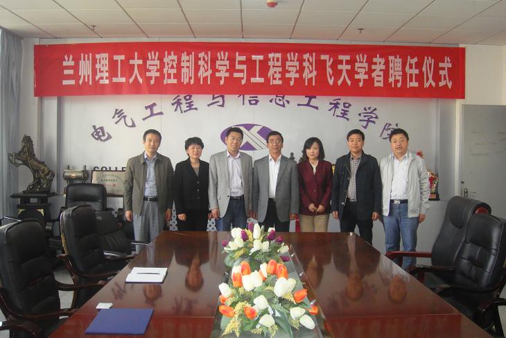 王佰成处长宣读了《甘肃省学位委员会、甘肃省教育厅关于公布首批飞天学者特聘教授和讲座教授名单的通知》(甘学位办[2014]11号)。李仁年副校长为我校控制科学与工程学科飞天学者讲座教授、中国矿业大学巩敦卫教授,飞天学者特聘教授、兰州理工大学包广清教授颁发了聘书。