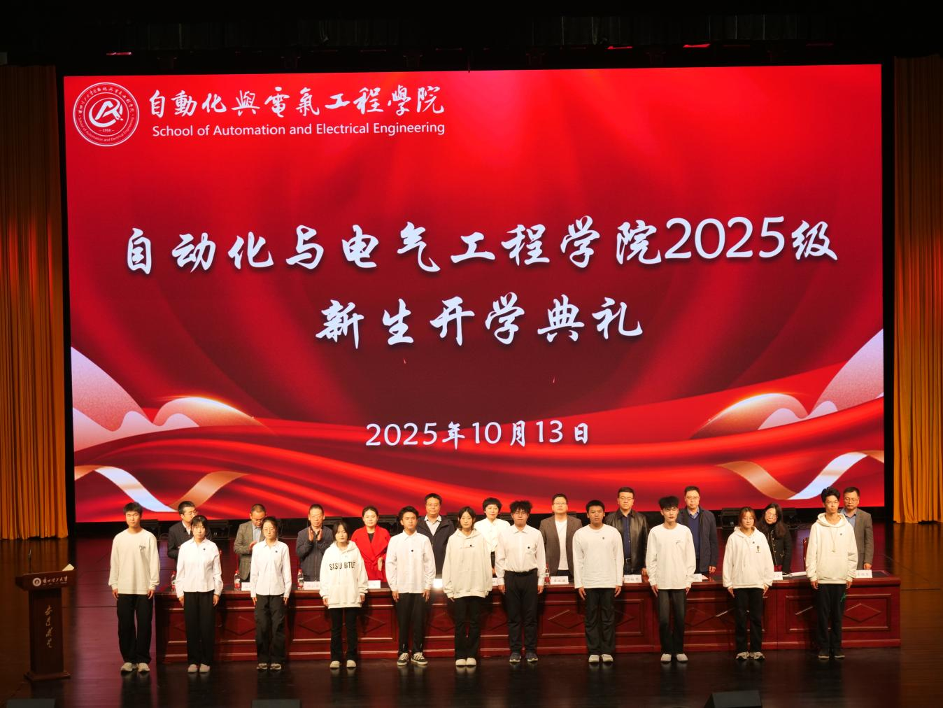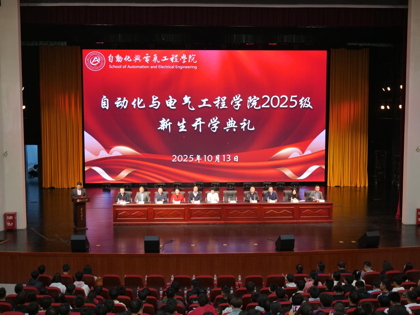 10月13日晚,自动化与电气工程学院在彭家坪校区大学生活动中心红柳剧场隆重举行2025级本科生开学典礼暨“大学第一课”新生入学教育活动。学院领导班子成员,各系部负责人、辅导员及2025级全体本科新生共同参加。典礼由学院党委副书记刘炜主持。