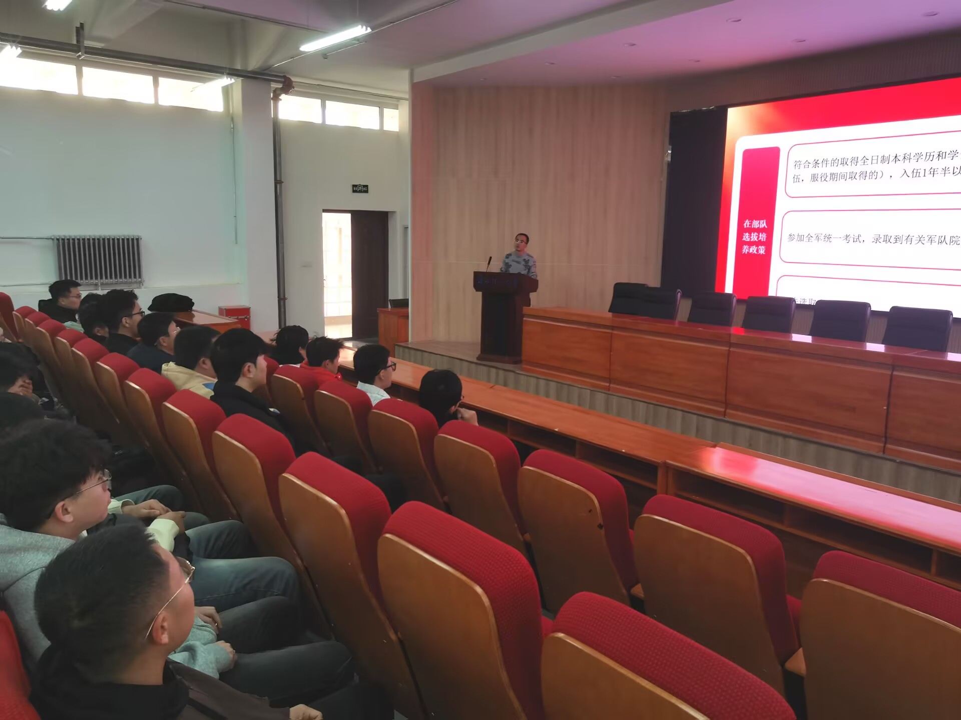 互动环节中,毕业生踊跃提问,李亚辉老师与张鹏结合最新政策,针对毕业与入伍的流程衔接、体检标准等具体问题,一一给予详尽解答。
