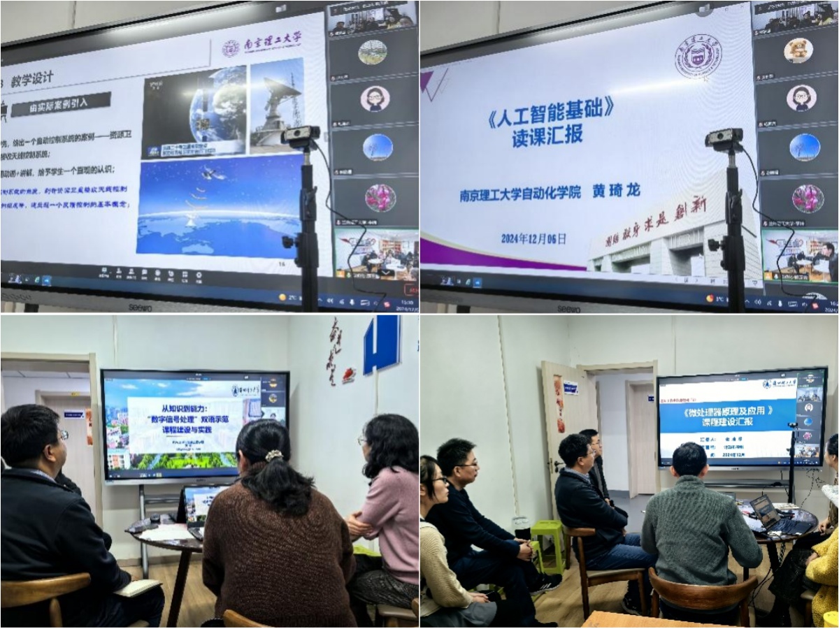 南京理工大学樊卫华老师针对《嵌入式控制系统及应用》课程“说课”,以卫星接收天线控制实例开篇,展示了课程教学环节设计、内容组织及教学方法优化;黄琦龙老师针对《人工智能基础》课程,围绕内容编排、教学设计创新、教材选用的考量及具有挑战性的考评方式设定,进行了“读课”分享。兰州理工大学黄玲老师展示了双语示范课程《数字信号处理》的“说课”,分享了双语教学的特色做法、讲义编纂及思政案例心得;张浩琛老师针对《微处理器原理及应用》,从教学背景与需求分析、教学内容设计、教学方法与手段、以及教学效果与反思方面,进行了“说课”展示。