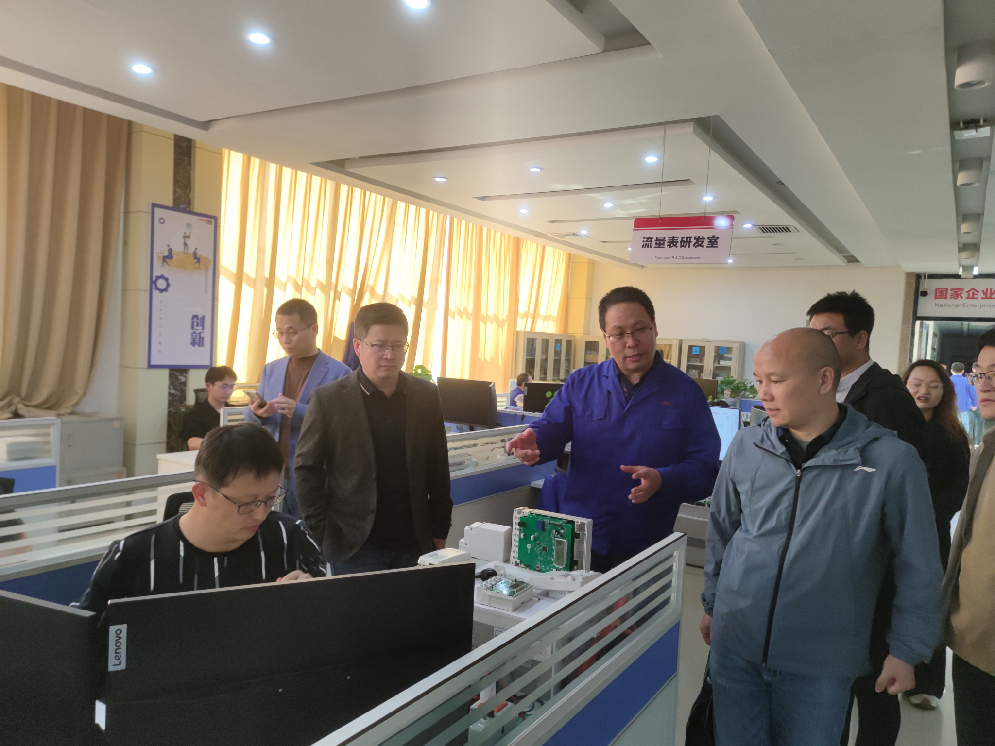 在交流会后,李二超副院长等一行人在相关部门负责人的陪同下,参观了隆基宁光仪表公司和隆基电气有限公司的研发中心和生产车间。参观过程中,学院团队详细了解了公司的生产流程、技术设备、学生就业及实习环境等情况。通过本次实地考察,学院团队对公司的运营状况和人才培养需求有了更加直观的了解。