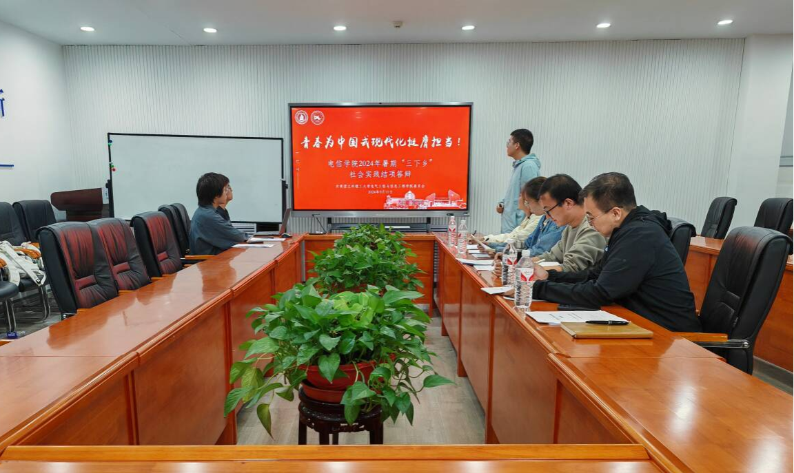 9月12日晚,电信学院2024年“青春为中国式现代化挺膺担当”暑期“三下乡”社会实践院级结项答辩在舒卷楼201楼会议室顺利举行。电信学院学生办副主任成晨、学院团委书记朱毅林、辅导员张鹏、团委委员王洁担任此次结项答辩评委。