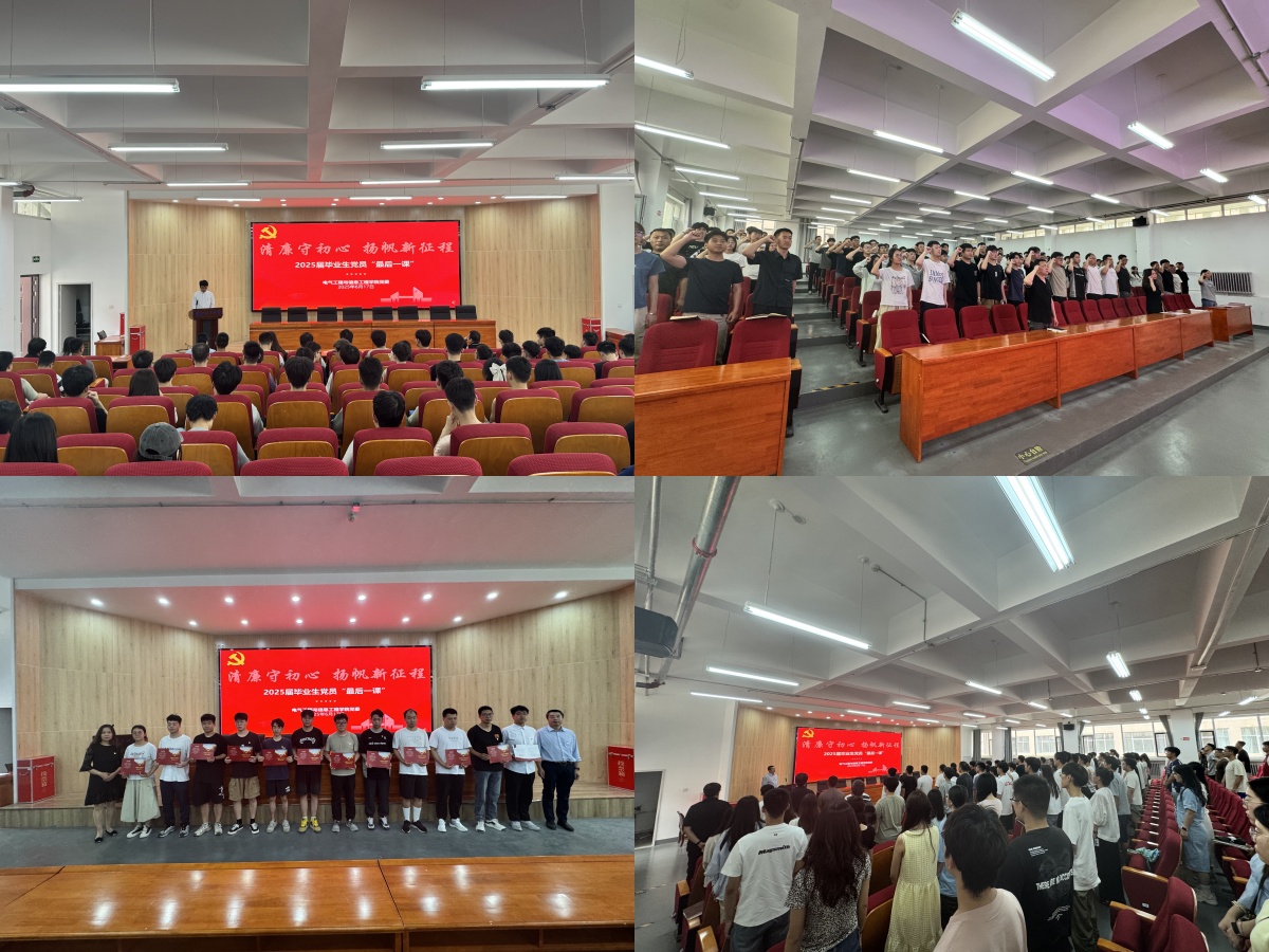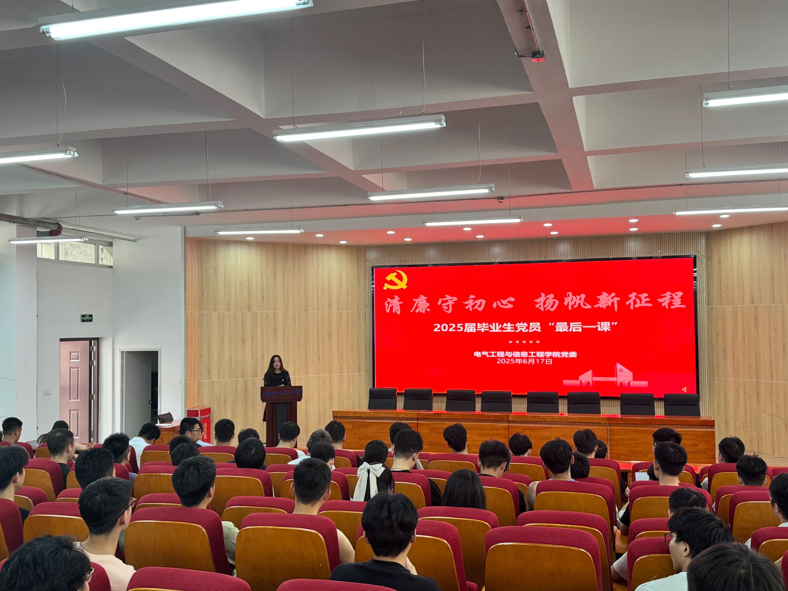 为引导毕业生党员坚定理想信念,强化党员身份意识和责任担当,以廉洁自律的作风开启人生新征程,6月17日,电信学院党委精心组织了“清廉守初心,扬帆新征程”2025 届毕业生党员“最后一课” 活动。学院党委书记杨雅琼、副书记刘炜、学生党支部书记以及全体2025届毕业生党员齐聚一堂,共同参与了此次活动。