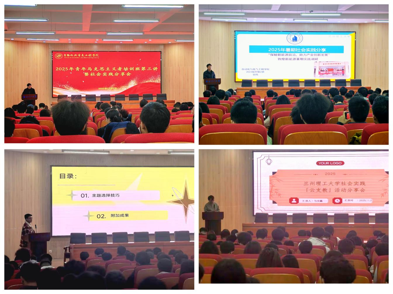为全面总结2025年暑期“三下乡”社会实践成果,扎实推进青年马克思主义者培养工程,11月5日,自动化与电气工程学院在舒卷楼D401教室成功举办青年马克思主义者培训班第三讲暨社会实践分享会。学院辅导员李明、赵雅婷,“三下乡”重点实践团队成员、青马工程全体学员及2025级新生代表共同参与。