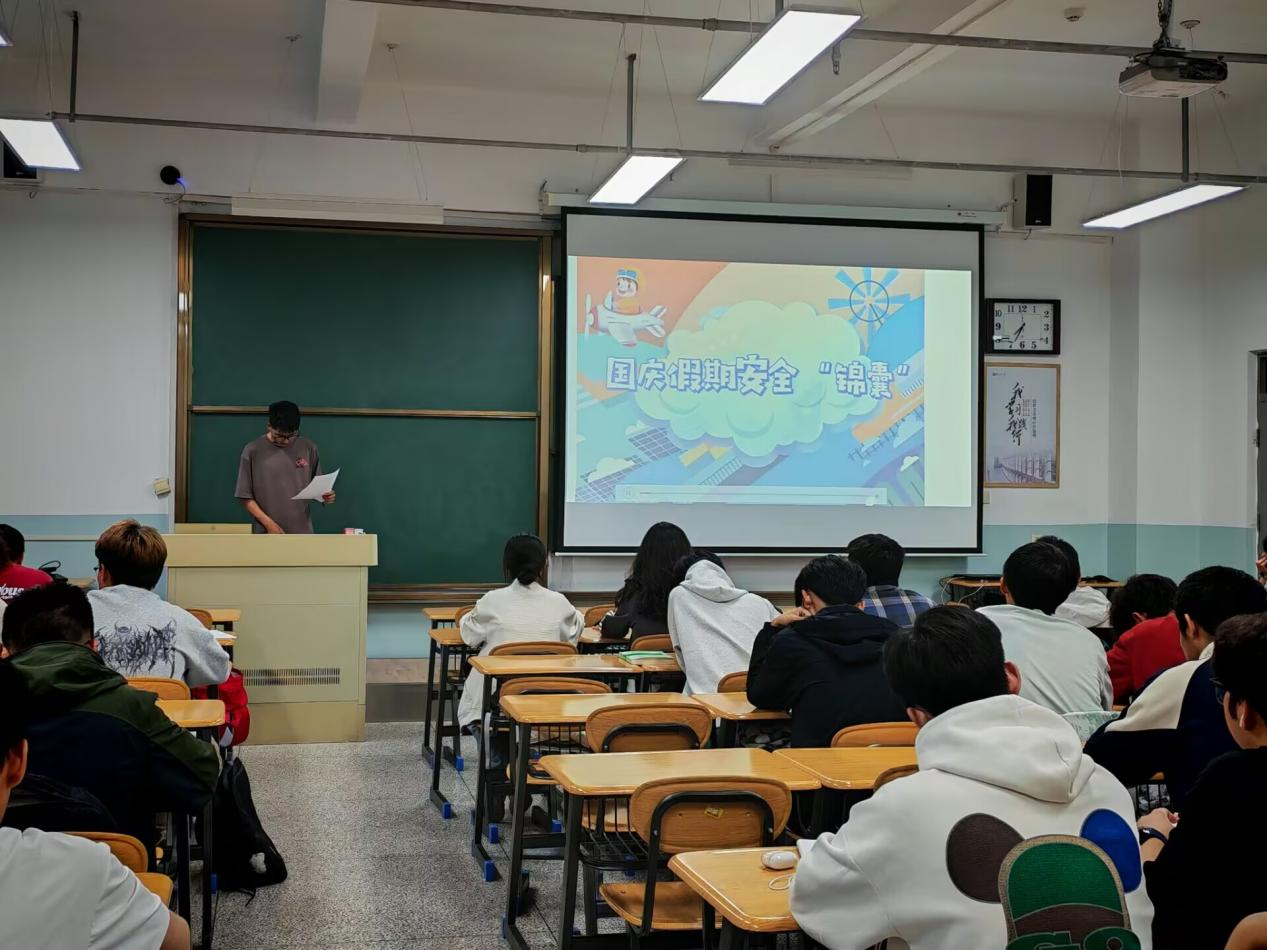 学院紧紧围绕筑牢安全防线这一重点,利用主题班会、主题党团日,全面普及防火防盗、防溺水、食品卫生、防灾避险等安全知识。针对国庆、中秋假期人员流动大、活动多的特点,各班重点开展了交通安全、旅行安全、聚集场所防踩踏、防诈骗等专题教育,引导学生合理安排出行计划,避免前往人多拥挤或安全设施不完善的区域,确保假期安全。会后,各班班主任、辅导员进行宿舍卫生安全大检查,确保不留安全隐患、不留卫生死角。