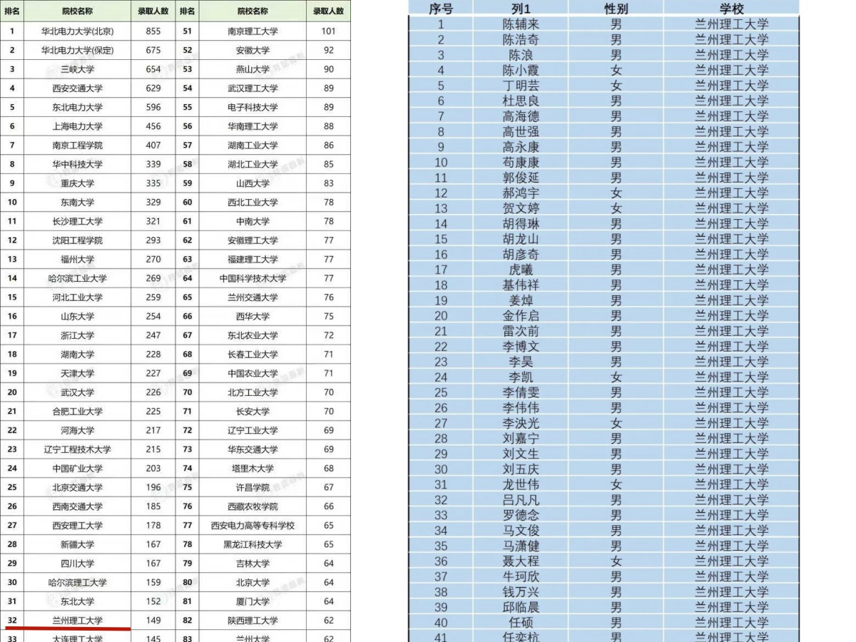近日,国家电网2026年第一批高校毕业生录取名单公布,兰州理工大学共有149名学生入选,录取人数位居全省高校第一。其中,自动化与电气工程学院共计119人被录取,含本科生65人、研究生54人;在签约单位分布上,86人入职省内国网单位,33人将赴省外工作,持续成为国家电网人才输送的重要力量。